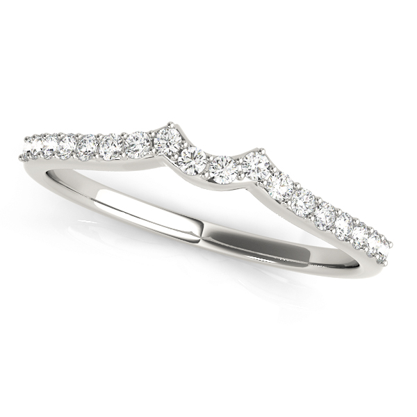 14k White Gold Wedding Band with 18 – .01PT Round Stones, equal to 1/5 carats total weight. This ring has an optional matching Engagement Ring. Can be customized to fit any stone and in any material. Please contact Ronelli Corp for custom orders and modification information, as pricing may vary.