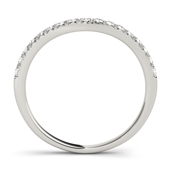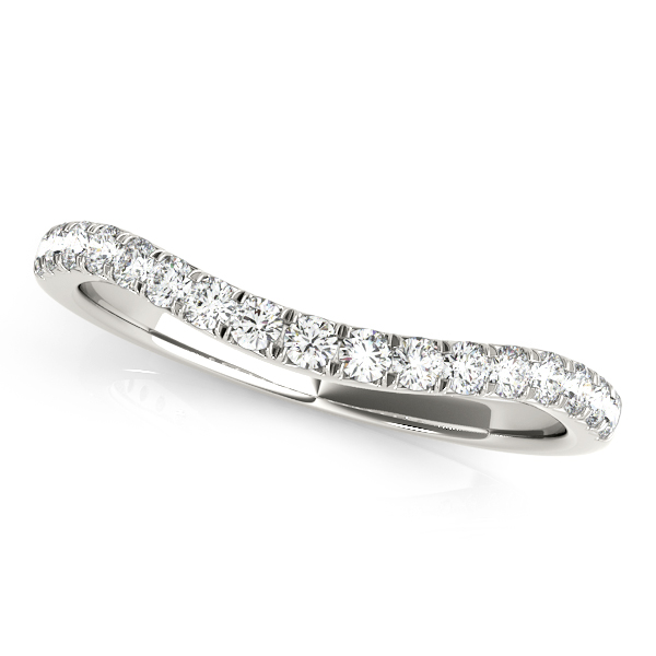 14k White Gold Wedding Band with 17 – .015PT Round Stones, equal to 1/4 carats total weight. This ring has an optional matching Engagement Ring. Can be customized to fit any stone and in any material. Please contact Ronelli Corp for custom orders and modification information, as pricing may vary.
