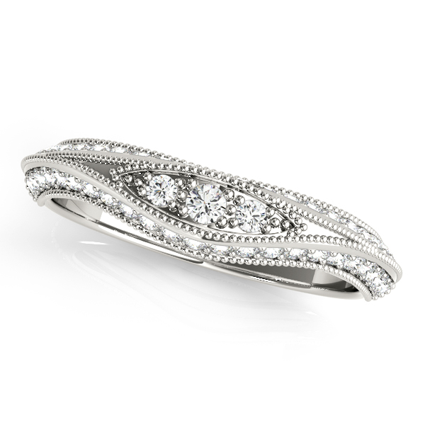14k White Gold Wedding Band with 8 – .004PT Round & 8 – .005PT Round & 30 – .0075PT Round & 1 – .02PT Round Stones, equal to 1/3 carats total weight. This ring has an optional matching Engagement Ring. Can be customized to fit any stone and in any material. Please contact Ronelli Corp for custom orders and modification information, as pricing may vary.