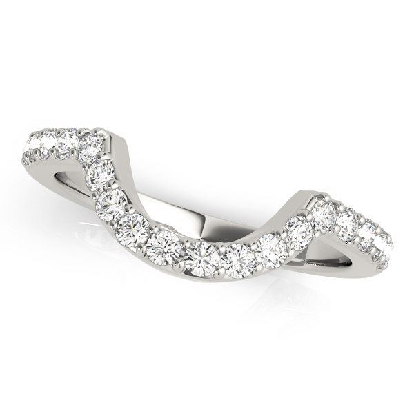 14k White Gold Wedding Band with 18 – .02PT Round Stones, equal to 1/3 carats total weight. This ring has an optional matching Engagement Ring. Can be customized to fit any stone and in any material. Please contact Ronelli Corp for custom orders and modification information, as pricing may vary.