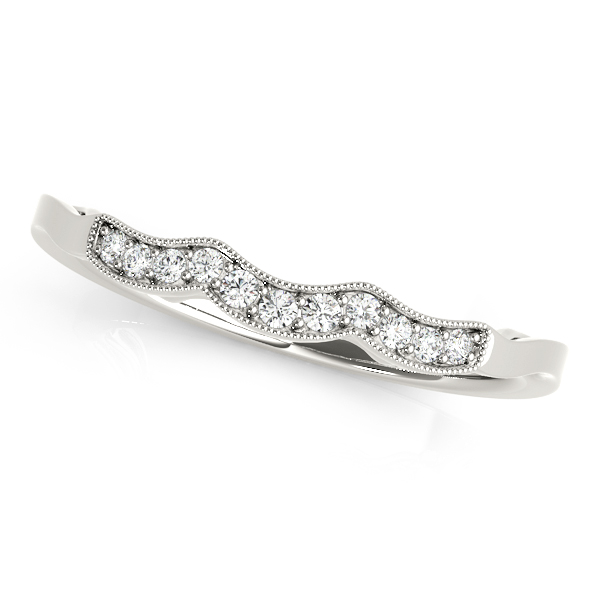14k White Gold Wedding Band with 8 – .004PT Round & 3 – .0075PT Round Stones, equal to 1/20 carats total weight. This ring has an optional matching Engagement Ring. Can be customized to fit any stone and in any material. Please contact Ronelli Corp for custom orders and modification information, as pricing may vary.