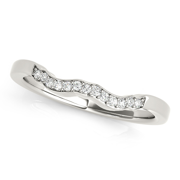14k White Gold Wedding Band with 13 – .006PT Round Stones, equal to 1/15 carats total weight. This ring has an optional matching Engagement Ring. Can be customized to fit any stone and in any material. Please contact Ronelli Corp for custom orders and modification information, as pricing may vary.