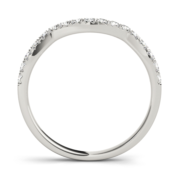 14k White Gold Wedding Band with 17 – .015PT Round Stones, equal to 1/4 carats total weight. This ring has an optional matching Engagement Ring. Can be customized to fit any stone and in any material. Please contact Ronelli Corp for custom orders and modification information, as pricing may vary.