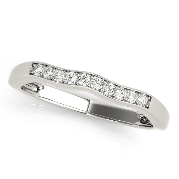 14k White Gold Wedding Band with 10 – .006PT Round Stones, equal to 1/20 carats total weight. This ring has an optional matching Engagement Ring. Can be customized to fit any stone and in any material. Please contact Ronelli Corp for custom orders and modification information, as pricing may vary.