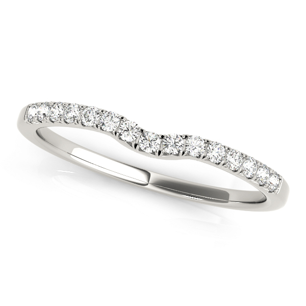 14k White Gold Wedding Band with 15 – .0075PT Round Stones, equal to 1/8 carats total weight. This ring has an optional matching Engagement Ring. Can be customized to fit any stone and in any material. Please contact Ronelli Corp for custom orders and modification information, as pricing may vary.