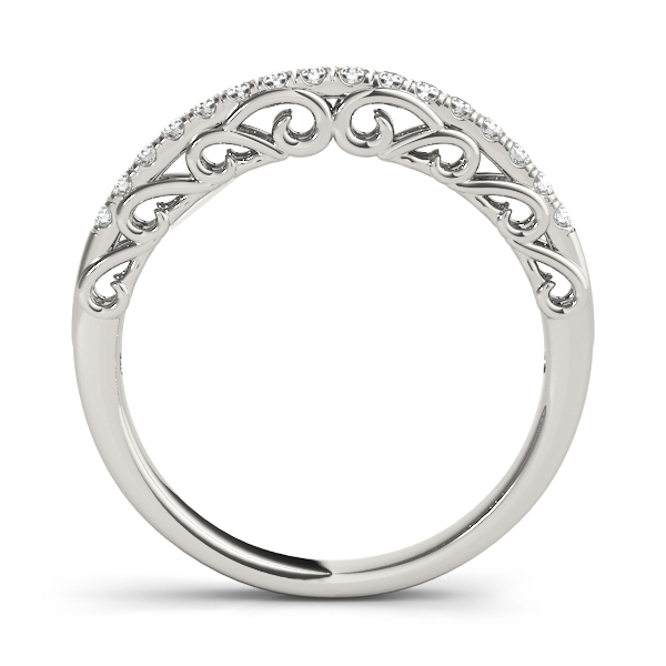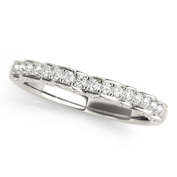 14k White Gold Wedding Band with 16 – .0075PT Round Stones, equal to 1/8 carats total weight. This ring has an optional matching Engagement Ring. Can be customized to fit any stone and in any material. Please contact Ronelli Corp for custom orders and modification information, as pricing may vary.