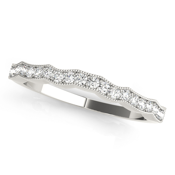 14k White Gold Wedding Band with 20 – .0075PT Round Stones, equal to 1/6 carats total weight. This ring has an optional matching Engagement Ring. Can be customized to fit any stone and in any material. Please contact Ronelli Corp for custom orders and modification information, as pricing may vary.