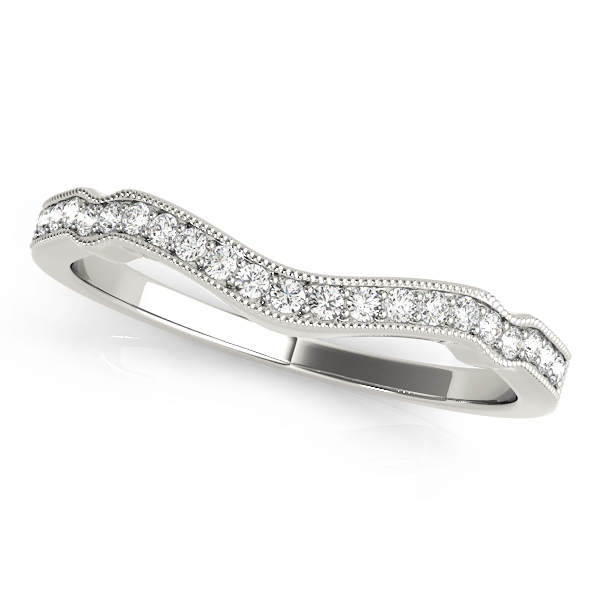 14k White Gold Wedding Band with 21 – .0075PT Round Stones, equal to 1/6 carats total weight. This ring has an optional matching Engagement Ring. Can be customized to fit any stone and in any material. Please contact Ronelli Corp for custom orders and modification information, as pricing may vary.