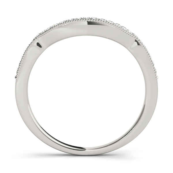 14k White Gold Wedding Band with 25 – .006PT Round Stones, equal to 1/6 carats total weight. This ring has an optional matching Engagement Ring. Can be customized to fit any stone and in any material. Please contact Ronelli Corp for custom orders and modification information, as pricing may vary.