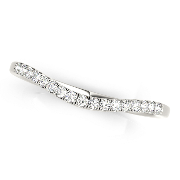 14k White Gold Wedding Band with 17 – .0075PT Round Stones, equal to 1/8 carats total weight. This ring has an optional matching Engagement Ring. Can be customized to fit any stone and in any material. Please contact Ronelli Corp for custom orders and modification information, as pricing may vary.