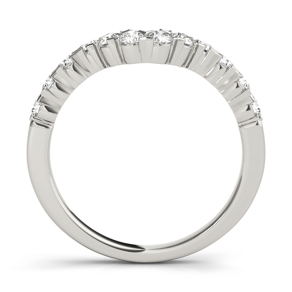 14k White Gold Wedding Band with 12 – .04PT Round Stones, equal to 1/2 carats total weight. This ring has an optional matching Engagement Ring. Can be customized to fit any stone and in any material. Please contact Ronelli Corp for custom orders and modification information, as pricing may vary.