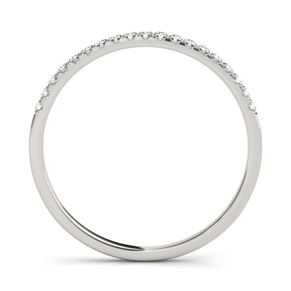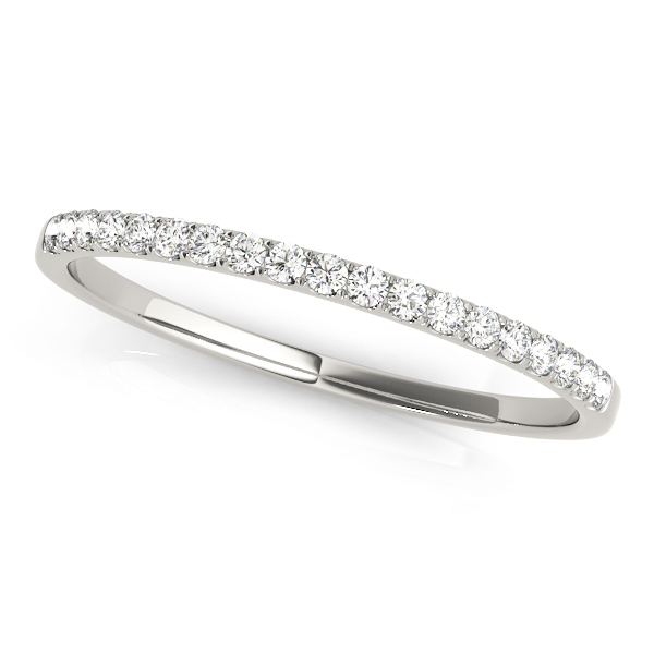 14k White Gold Wedding Band with 19 – .006PT Round Stones, equal to 1/8 carats total weight. This ring has an optional matching Engagement Ring. Can be customized to fit any stone and in any material. Please contact Ronelli Corp for custom orders and modification information, as pricing may vary.