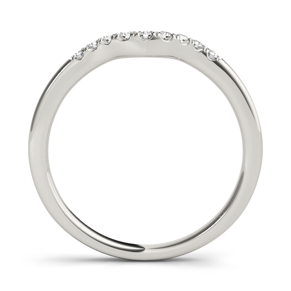 14k White Gold Wedding Band with 9 – .01PT Round Stones, equal to 1/10 carats total weight. This ring has an optional matching Engagement Ring. Can be customized to fit any stone and in any material. Please contact Ronelli Corp for custom orders and modification information, as pricing may vary.