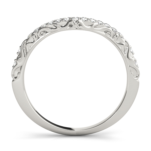 14k White Gold Wedding Band with 2 – .004PT Round & 15 – .005PT Round Stones, equal to 1/10 carats total weight. This ring has an optional matching Engagement Ring. Can be customized to fit any stone and in any material. Please contact Ronelli Corp for custom orders and modification information, as pricing may vary.