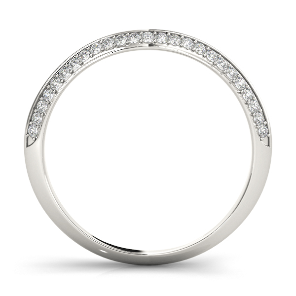14k White Gold Wedding Band with 50 – .004PT Round Stones, equal to 1/5 carats total weight. This ring has an optional matching Engagement Ring. Can be customized to fit any stone and in any material. Please contact Ronelli Corp for custom orders and modification information, as pricing may vary.