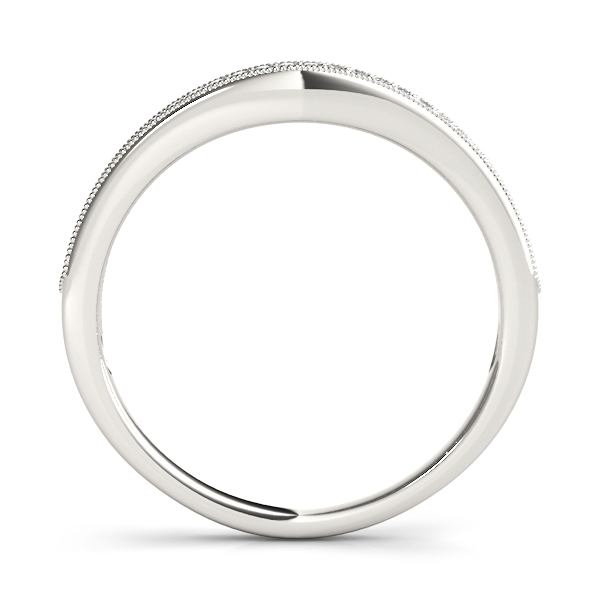 14k White Gold Wedding Band with 27 – .004PT Round Stones, equal to 1/10 carats total weight. This ring has an optional matching Engagement Ring. Can be customized to fit any stone and in any material. Please contact Ronelli Corp for custom orders and modification information, as pricing may vary.