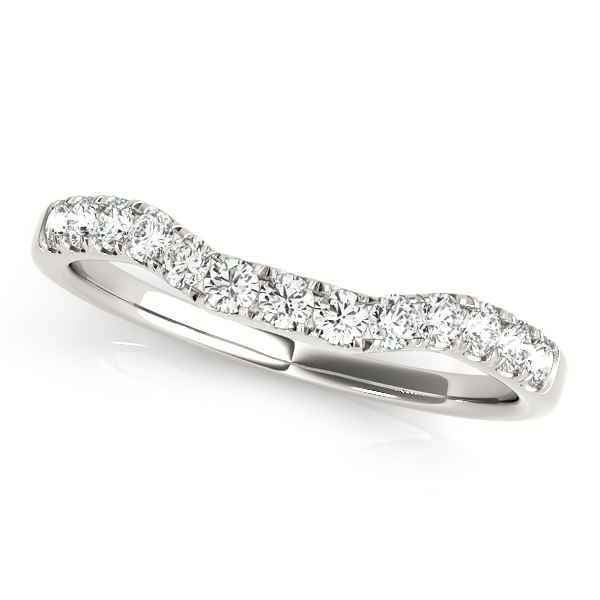 14k White Gold Wedding Band with 16 – .015PT Round Stones, equal to 1/4 carats total weight. This ring has an optional matching Engagement Ring. Can be customized to fit any stone and in any material. Please contact Ronelli Corp for custom orders and modification information, as pricing may vary.
