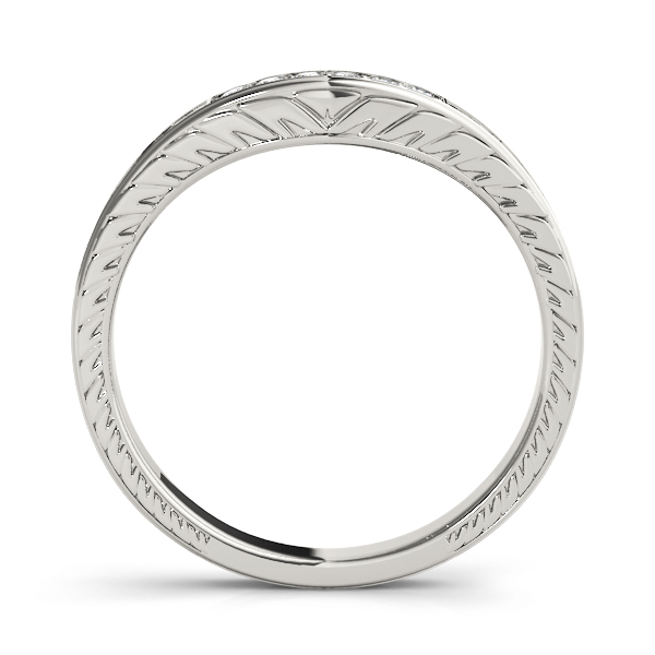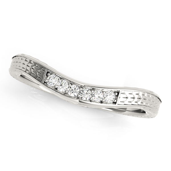 14k White Gold Wedding Band with 6 – .01PT Round Stones, equal to 1/20 carats total weight. This ring has an optional matching Engagement Ring. Can be customized to fit any stone and in any material. Please contact Ronelli Corp for custom orders and modification information, as pricing may vary.