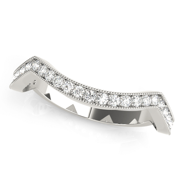 14k White Gold Wedding Band with 31 – .0075PT Round Stones, equal to 1/4 carats total weight. This ring has an optional matching Engagement Ring. Can be customized to fit any stone and in any material. Please contact Ronelli Corp for custom orders and modification information, as pricing may vary.