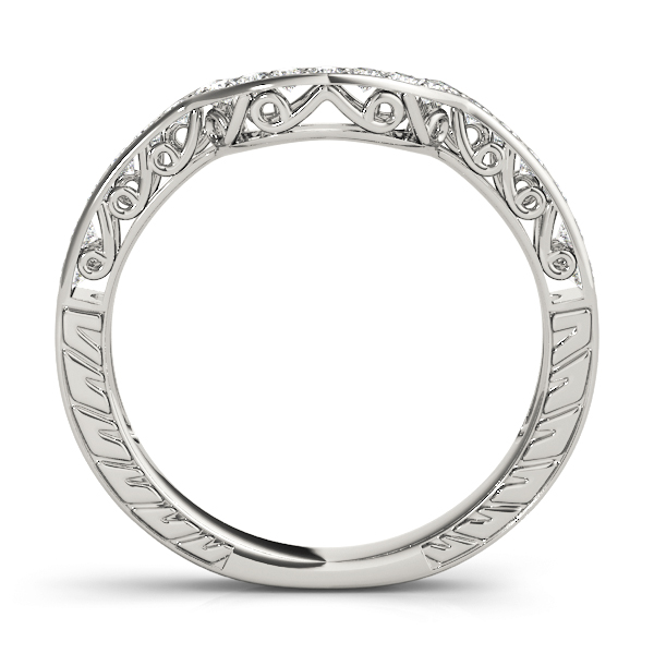 14k White Gold Wedding Band with 9 – .0125PT Round & 12 – .01PT Round Stones, equal to 1/4 carats total weight. This ring has an optional matching Engagement Ring. Can be customized to fit any stone and in any material. Please contact Ronelli Corp for custom orders and modification information, as pricing may vary.