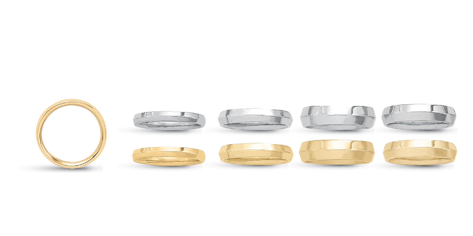 14k Yellow Gold Wedding Band with no stones. Can be customized to fit any stone and in any material. Please contact Ronelli Corp for custom orders and modification information, as pricing may vary.