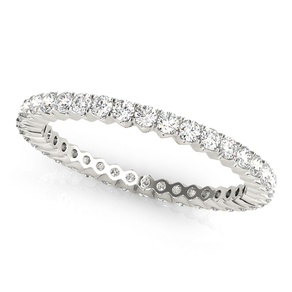 14k White Gold Wedding Band with 31 – .0075PT Round Stones, equal to 1/4 carats total weight. Can be customized to fit any stone and in any material. Please contact Ronelli Corp for custom orders and modification information, as pricing may vary.