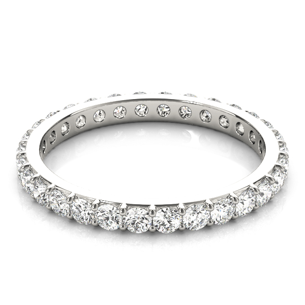 14k White Gold Wedding Band with 42 – .01PT Round Stones, equal to 3/8 carats total weight. Can be customized to fit any stone and in any material. Please contact Ronelli Corp for custom orders and modification information, as pricing may vary.