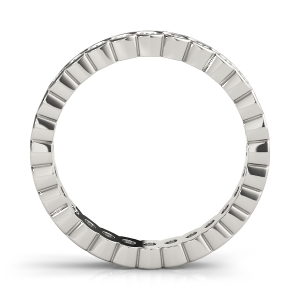 14k White Gold Wedding Band with 30 – .03PT Round Stones, equal to 7/8 carats total weight. Can be customized to fit any stone and in any material. Please contact Ronelli Corp for custom orders and modification information, as pricing may vary.