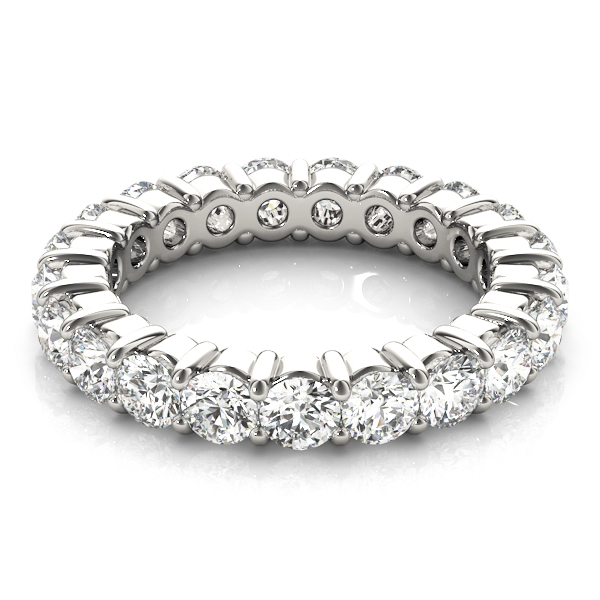 14k White Gold Wedding Band with 20 – .15PT Round Stones, equal to 3 carats total weight. Can be customized to fit any stone and in any material. Please contact Ronelli Corp for custom orders and modification information, as pricing may vary.