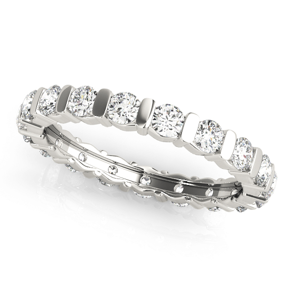 14k White Gold Wedding Band with 16 – .07PT Round Stones, equal to 1 1/8 carats total weight. Can be customized to fit any stone and in any material. Please contact Ronelli Corp for custom orders and modification information, as pricing may vary.