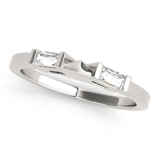 14k White Gold Wedding Band with 2 – 4×2 Straight Baguette Stones, equal to 1/3 carats total weight. This ring has an optional matching Engagement Ring. Can be customized to fit any stone and in any material. Please contact Ronelli Corp for custom orders and modification information, as pricing may vary.