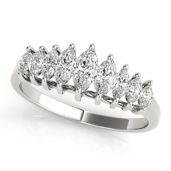 14k White Gold Wedding Band with 1 – 6×3 Marquise & 2 – 3×1.5 Marquise & 2 – 4×2 Marquise & 2 – 5×2.5 Marquise & 2 – 3.5×2 Marquise Stones, equal to 1 carats total weight. Can be customized to fit any stone and in any material. Please contact Ronelli Corp for custom orders and modification information, as pricing may vary.