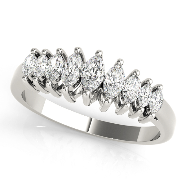 14k White Gold Wedding Band with 1 – 4.5×2.5 Marquise & 4 – 3×1.5 Marquise & 2 – 4.25×2.5 Marquise & 2 – 3.5×2 Marquise Stones, equal to 5/8 carats total weight. Can be customized to fit any stone and in any material. Please contact Ronelli Corp for custom orders and modification information, as pricing may vary.