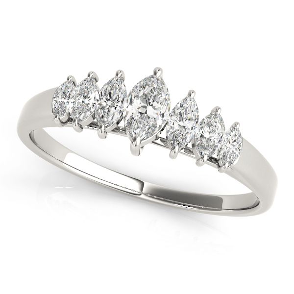 14k White Gold Wedding Band with 1 – 5×3 Marquise & 2 – 3×1.5 Marquise & 2 – 3.5×2 Marquise & 2 – 4×2 Marquise Stones, equal to 5/8 carats total weight. Can be customized to fit any stone and in any material. Please contact Ronelli Corp for custom orders and modification information, as pricing may vary.
