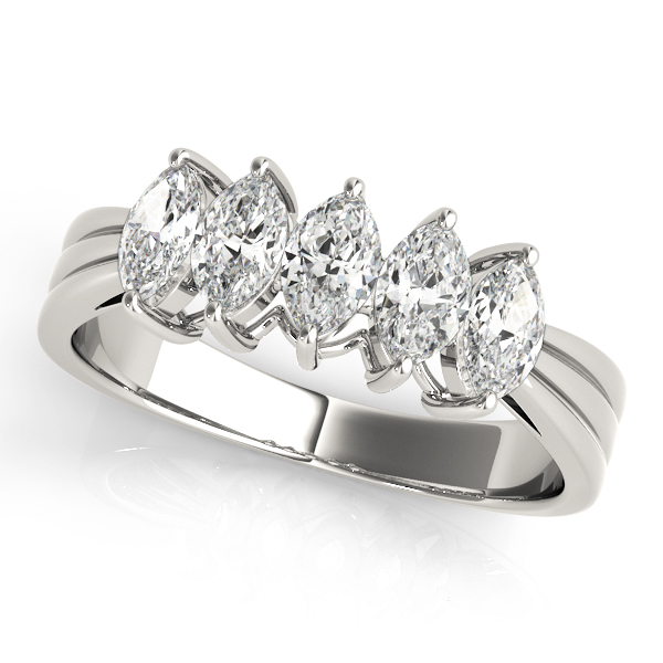14k White Gold Wedding Band with 5 – 5×3 Marquise Stones, equal to 1 carats total weight. Can be customized to fit any stone and in any material. Please contact Ronelli Corp for custom orders and modification information, as pricing may vary.