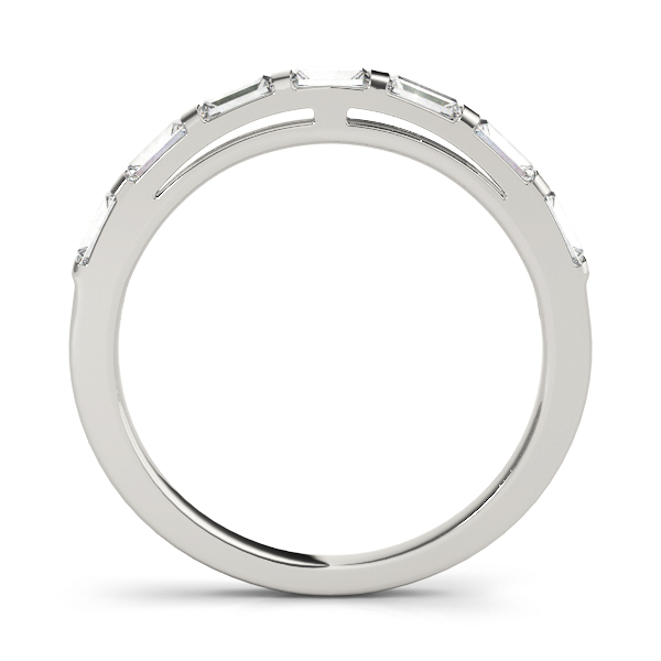 14k White Gold Wedding Band with 7 – 3.5×2.5 Straight Baguette Stones, equal to 1 3/8 carats total weight. This ring has an optional matching Engagement Ring. Can be customized to fit any stone and in any material. Please contact Ronelli Corp for custom orders and modification information, as pricing may vary.
