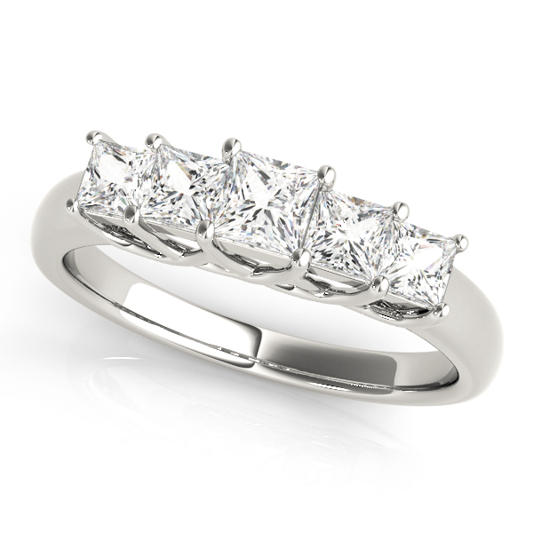 14k White Gold Wedding Band with 1 – 2.5×2.5 Square & 2 – 2×2 Square & 2 – 2.25×2.25 Square Stones, equal to 1/3 carats total weight. Can be customized to fit any stone and in any material. Please contact Ronelli Corp for custom orders and modification information, as pricing may vary.