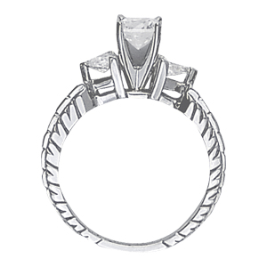 14k White Gold Wedding Band with 5 – .02PT Round Stones, equal to 1/10 carats total weight. Can be customized to fit any stone and in any material. Please contact Ronelli Corp for custom orders and modification information, as pricing may vary.