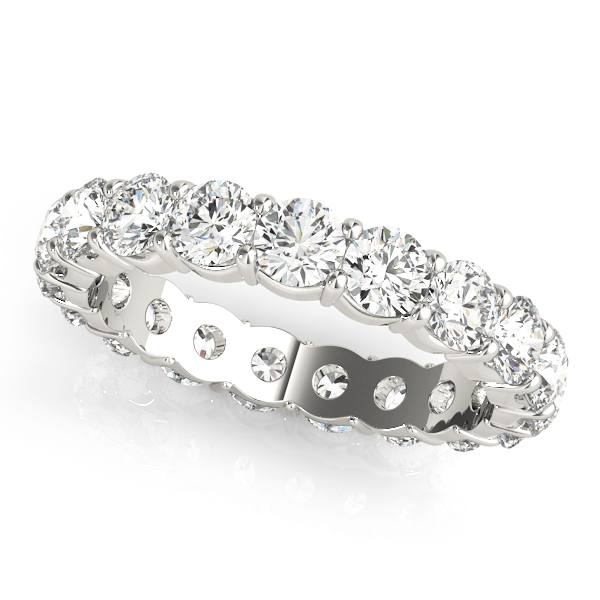 14k White Gold Wedding Band with 40 – .02PT Round Stones, equal to 7/8 carats total weight. Can be customized to fit any stone and in any material. Please contact Ronelli Corp for custom orders and modification information, as pricing may vary.
