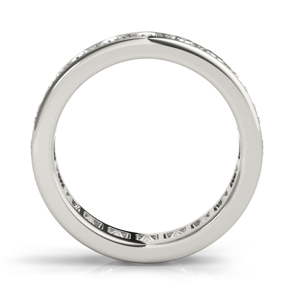 14k White Gold Wedding Band with 49 – .01PT Round Stones, equal to 1/2 carats total weight. Can be customized to fit any stone and in any material. Please contact Ronelli Corp for custom orders and modification information, as pricing may vary.