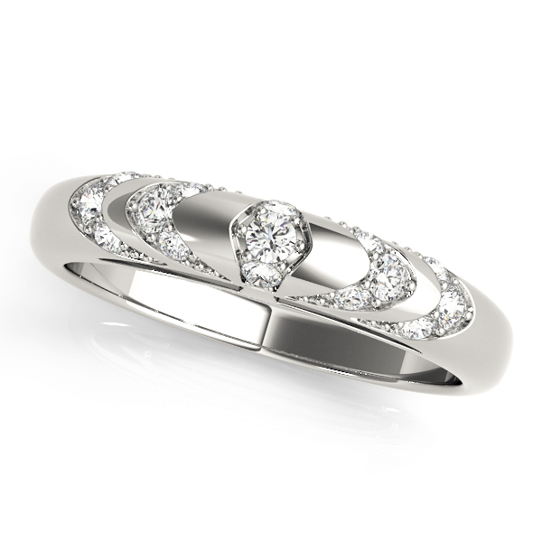 14k White Gold Wedding Band with 1 – .025PT Round & 4 – .02PT Round & 10 – .015PT Round Stones, equal to 1/4 carats total weight. This ring has an optional matching Engagement Ring. Can be customized to fit any stone and in any material. Please contact Ronelli Corp for custom orders and modification information, as pricing may vary.
