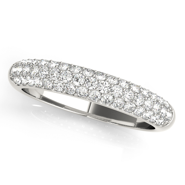 14k White Gold Wedding Band with 49 – .0075PT Round Stones, equal to 3/8 carats total weight. This ring has an optional matching Engagement Ring. Can be customized to fit any stone and in any material. Please contact Ronelli Corp for custom orders and modification information, as pricing may vary.