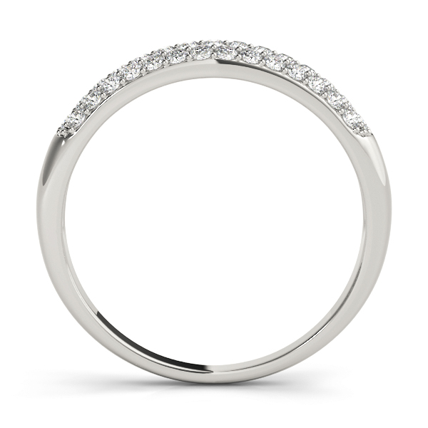14k White Gold Wedding Band with 15 – .0075PT Round & 28 – .005PT Round Stones, equal to 1/4 carats total weight. This ring has an optional matching Engagement Ring. Can be customized to fit any stone and in any material. Please contact Ronelli Corp for custom orders and modification information, as pricing may vary.