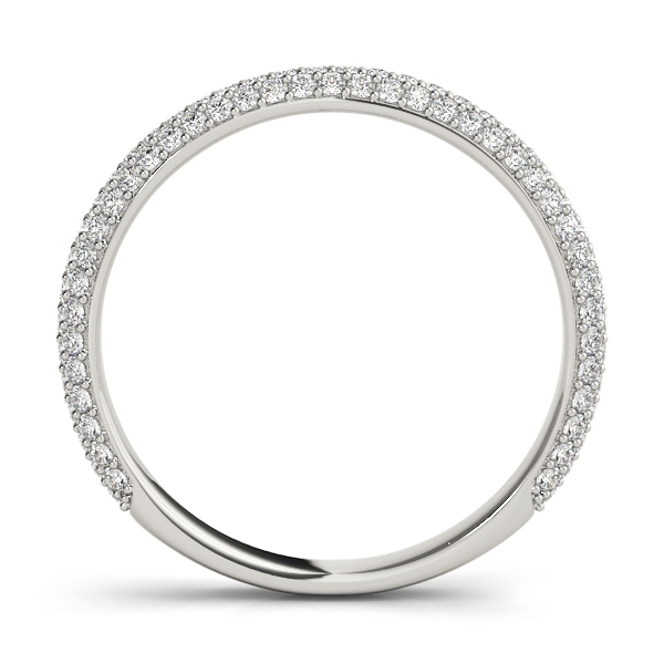 14k White Gold Wedding Band with 142 – .003PT Round Stones, equal to 3/8 carats total weight. This ring has an optional matching Engagement Ring. Can be customized to fit any stone and in any material. Please contact Ronelli Corp for custom orders and modification information, as pricing may vary.