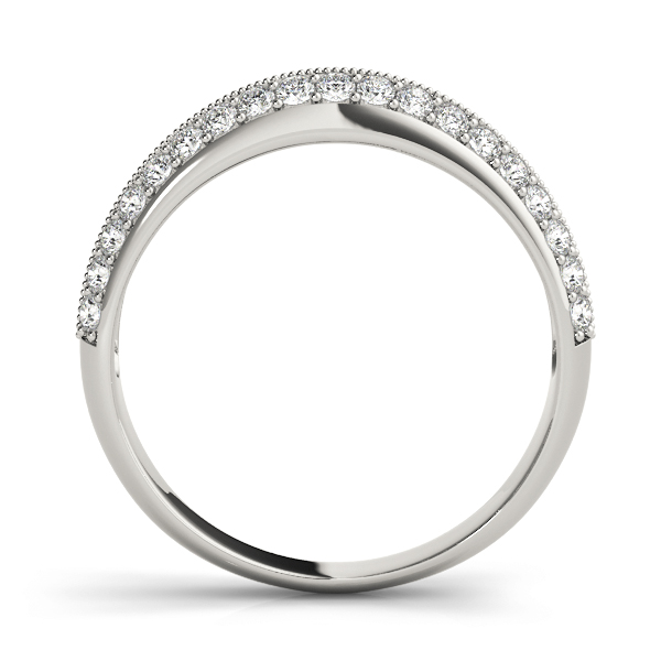 14k White Gold Wedding Band with 38 – .01PT Round Stones, equal to 3/8 carats total weight. This ring has an optional matching Engagement Ring. Can be customized to fit any stone and in any material. Please contact Ronelli Corp for custom orders and modification information, as pricing may vary.