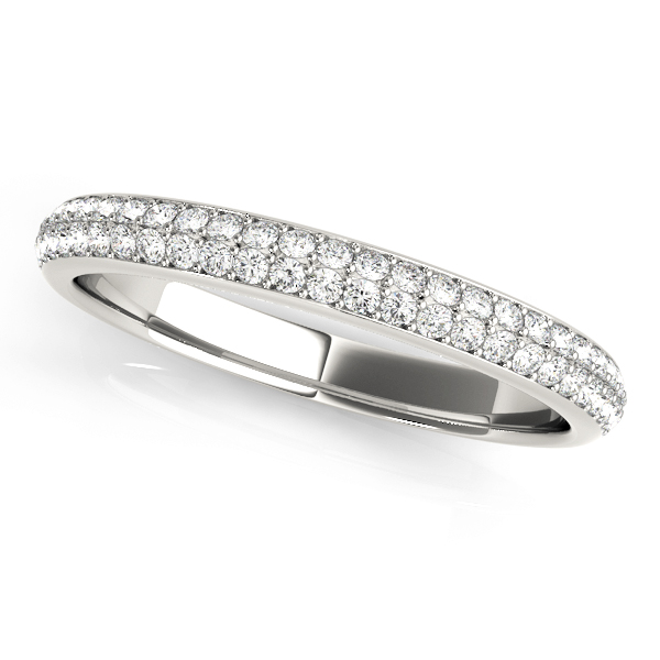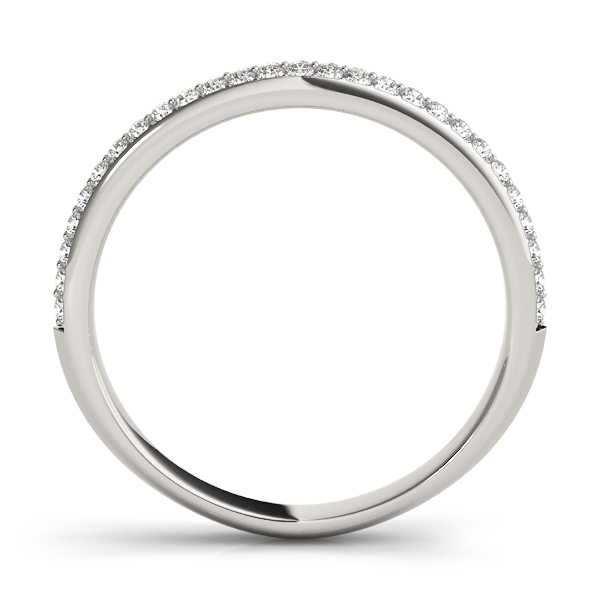 14k White Gold Wedding Band with 54 – .005PT Round Stones, equal to 1/4 carats total weight. This ring has an optional matching Engagement Ring. Can be customized to fit any stone and in any material. Please contact Ronelli Corp for custom orders and modification information, as pricing may vary.