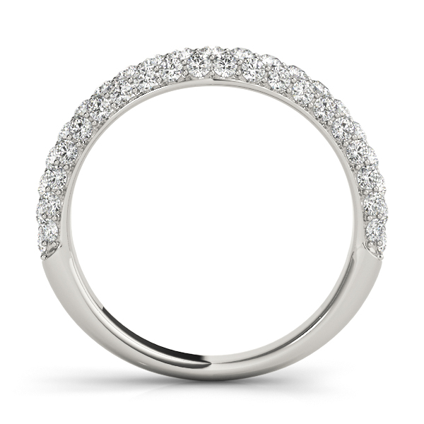 14k White Gold Wedding Band with 56 – .005PT Round & 29 – .006PT Round Stones, equal to 1/2 carats total weight. This ring has an optional matching Engagement Ring. Can be customized to fit any stone and in any material. Please contact Ronelli Corp for custom orders and modification information, as pricing may vary.