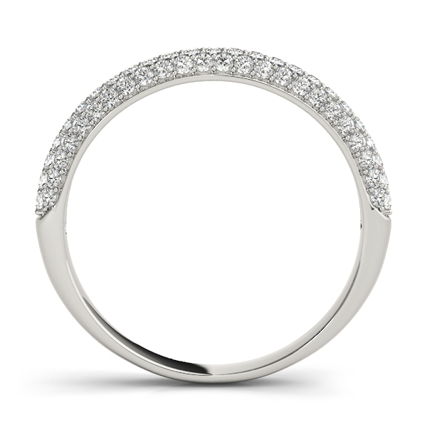 14k White Gold Wedding Band with 73 – .005PT Round Stones, equal to 3/8 carats total weight. This ring has an optional matching Engagement Ring. Can be customized to fit any stone and in any material. Please contact Ronelli Corp for custom orders and modification information, as pricing may vary.