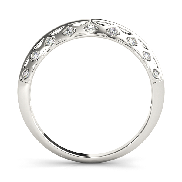 14k White Gold Wedding Band with 8 – .005PT Round & 10 – .006PT Round Stones, equal to 1/10 carats total weight. This ring has an optional matching Engagement Ring. Can be customized to fit any stone and in any material. Please contact Ronelli Corp for custom orders and modification information, as pricing may vary.