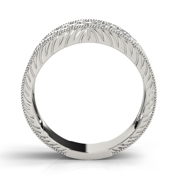 14k White Gold Wedding Band with 55 – .01PT Round Stones, equal to 1/2 carats total weight. Can be customized to fit any stone and in any material. Please contact Ronelli Corp for custom orders and modification information, as pricing may vary.